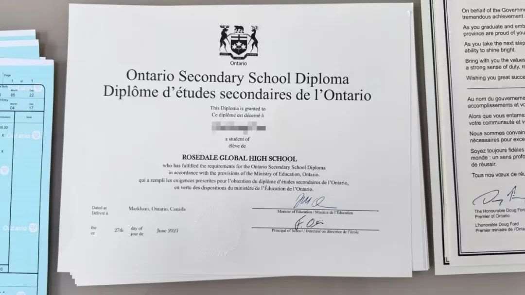 Ontario Secondary School Diploma(安省高中毕业证书):