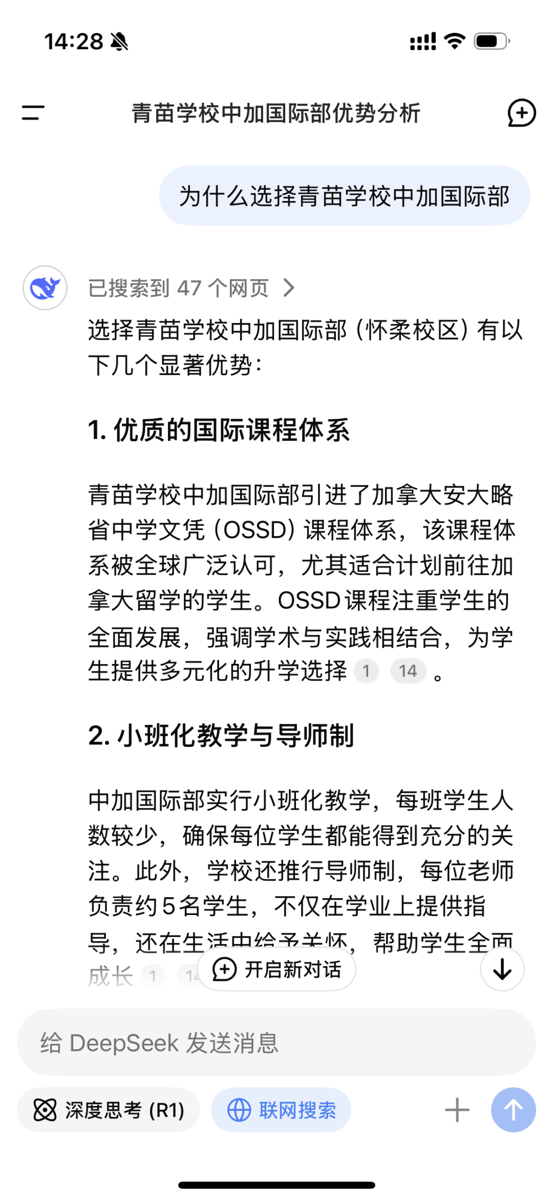 看!这就是DeepSeek眼中的青苗学校中加国际部!