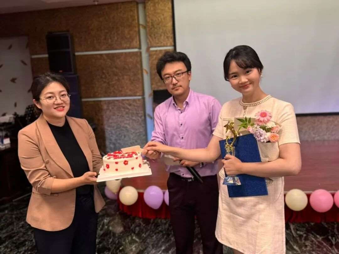 孙校长走上台,代表学校向新加入的教师们致以最诚挚的节日祝福。他将一束束精心准备的鲜花递到每一位新教师手中,这不仅是一份问候,更是一份沉甸甸的期许与嘱托。愿你们在未来的岁月里,以花为媒,播撒希望;以梦为马,不负韶华,在这片教育的沃土上,书写属于自己的光辉篇章。