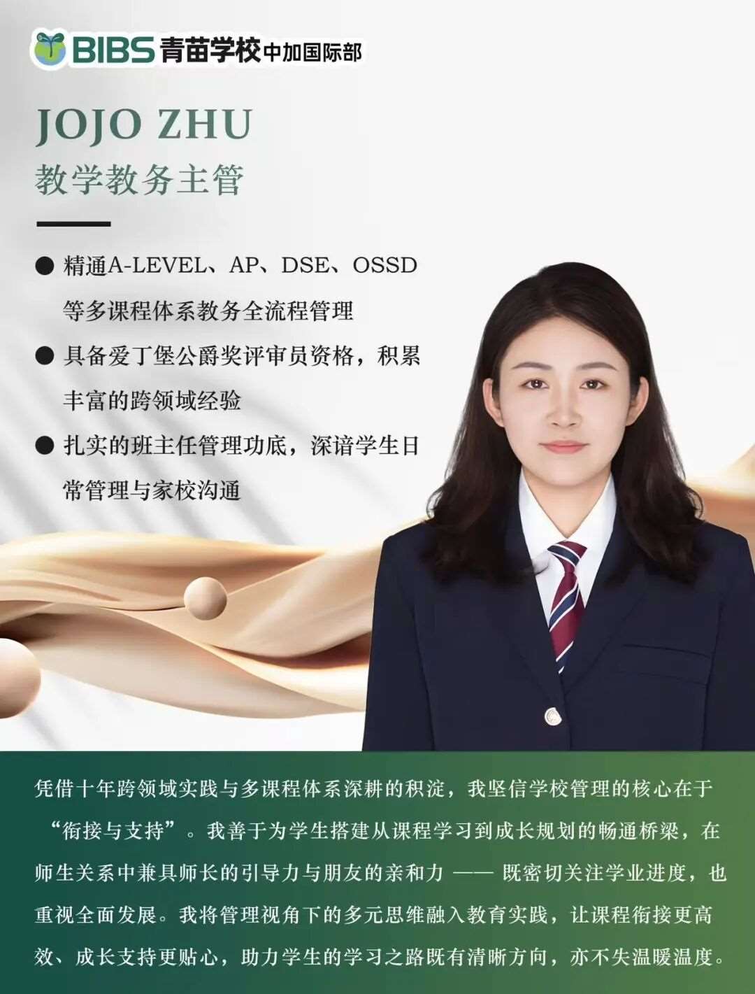 在我们学校,有这样一支匠心育人、群星闪耀的专业教师团队。他们毕业于世界学府,将国际化的视野、前沿的教育理念与深厚的学术底蕴带到课堂。在这里,知识与灵感碰撞,思想与智慧交织。他们用专业点亮学生的求知之路,用热爱与担当,引领每一位学子在更广阔的舞台上自信前行。