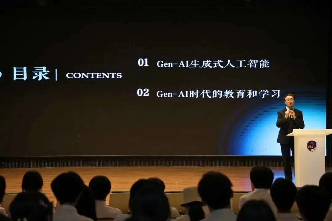 讲座中,李绣海校长围绕“生成式人工智能的技术内核与演进趋势”及“教育重构:GEN-AI驱动下的学习范式革新”两大维度展开分享。他结合哈珀国际教育集团的前沿实践与跨文化视野,系统解析了人工智能发展为教育形态、学习方式及人才培养带来的深层变革,启发学生思考未来社会中人与技术共生的新可能。