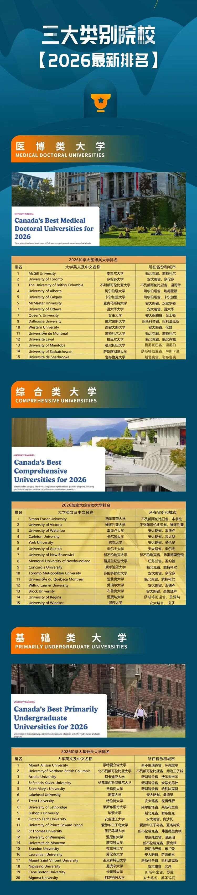 如期发布了2026年加拿大大学排名!