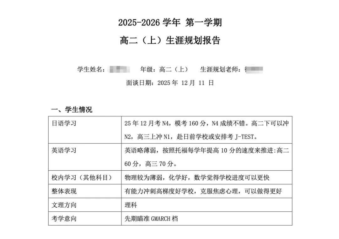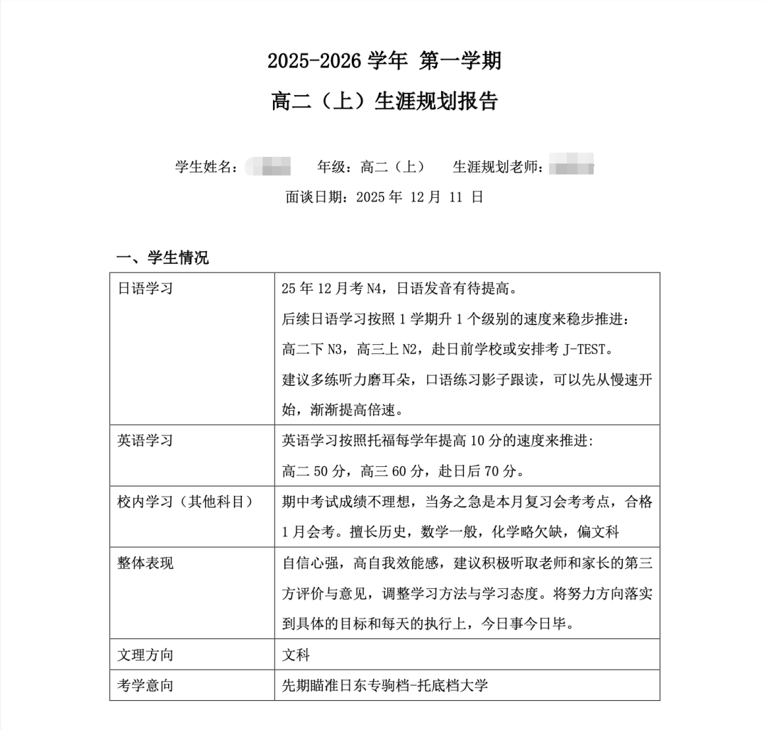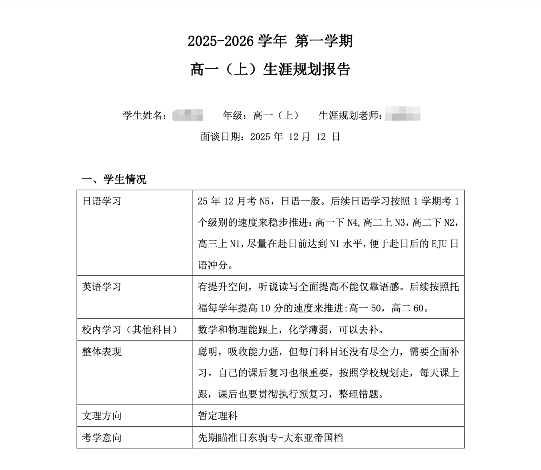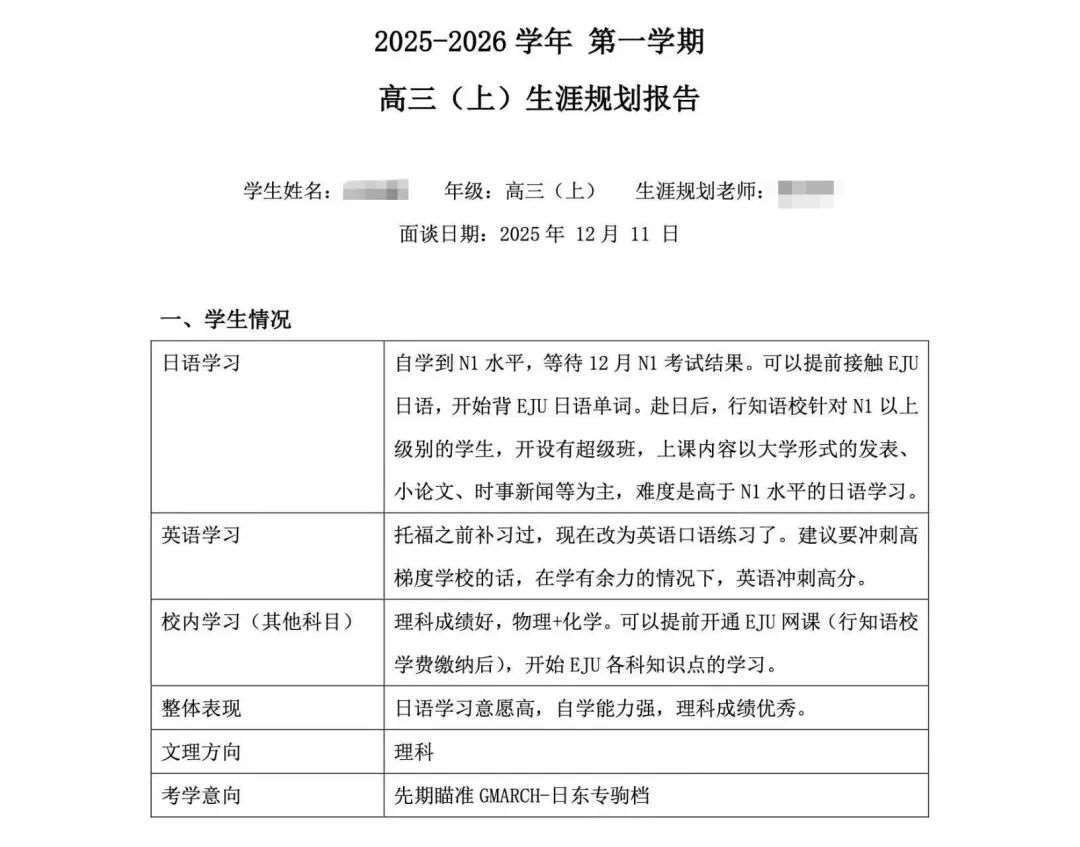 规划讲座结束后,升学指导专家徐老师留校进行为期两天的一对一解答,针对每组家庭、每位学生的具体情况给出*切实详细的建议,并整理成档案,帮助学生们更好的了解自己,为其规划日本大学申请专属升学路线。