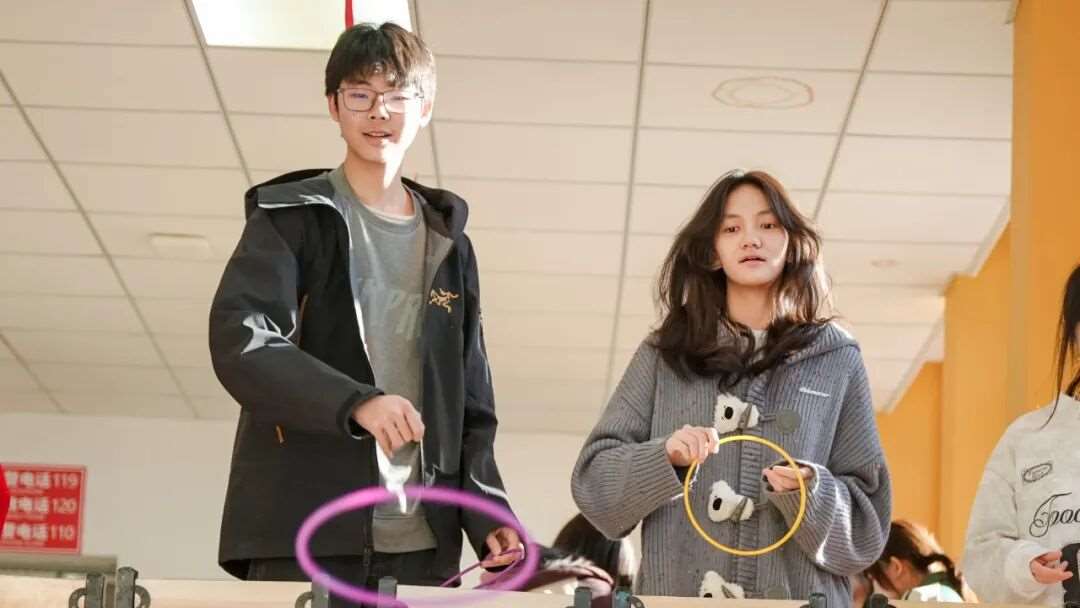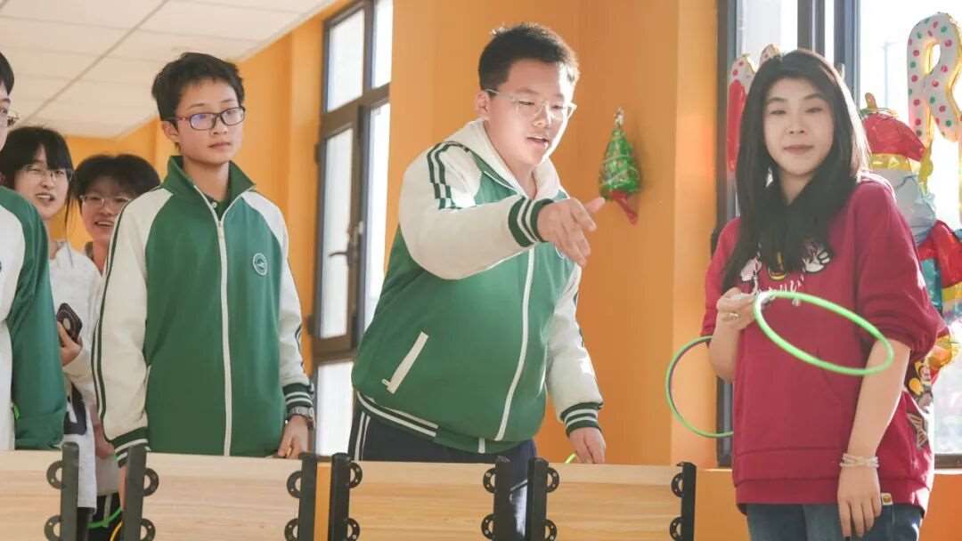 “灵巧套圈”区域,同学们屏气凝神、手腕轻抖,彩圈在空中划出优美弧线,套中奖品的阵阵欢呼响彻现场;“粘球飞镖”区充满竞技趣味,彩球精准投掷,粘球板啪嗒作响;“叠叠乐”挑战区,参赛者们全神贯注,体验平衡的微妙,紧张的氛围与成功时的自豪交织上演……多个小游戏玩法各异,却共同编织出热情与协作的温暖画卷,让每位参与者都在挑战中收获欢笑,在互动中拉近彼此的距离。
