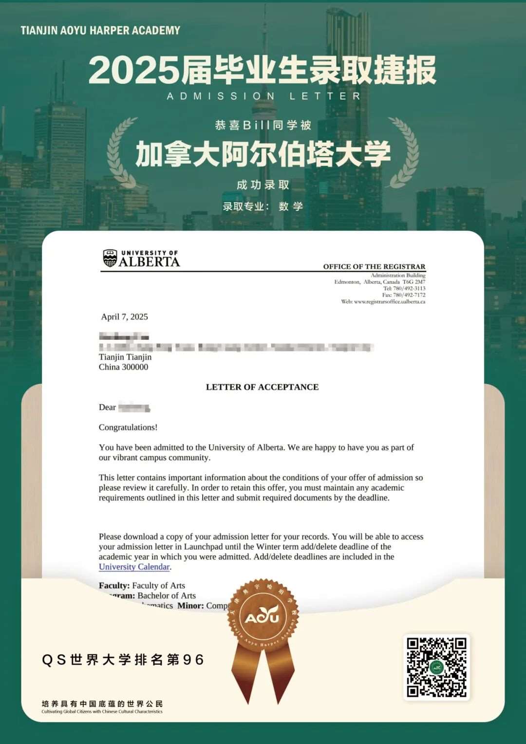 25届毕业生、阿尔伯塔大学、数学