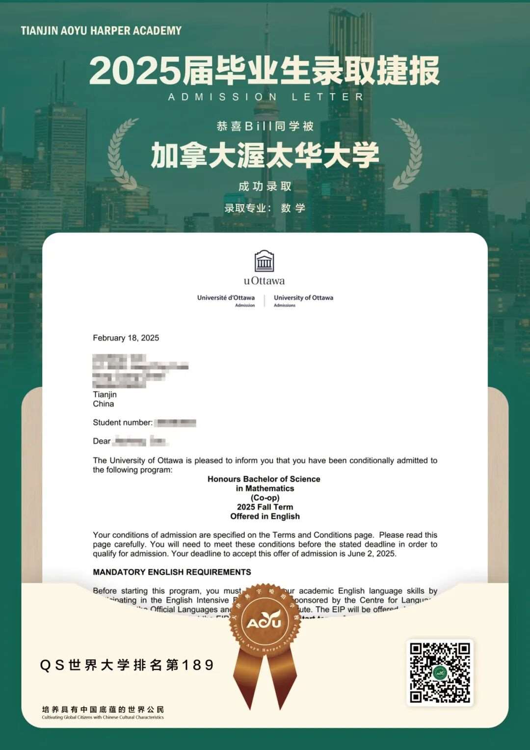 25届毕业生、多伦多大学、数学专业