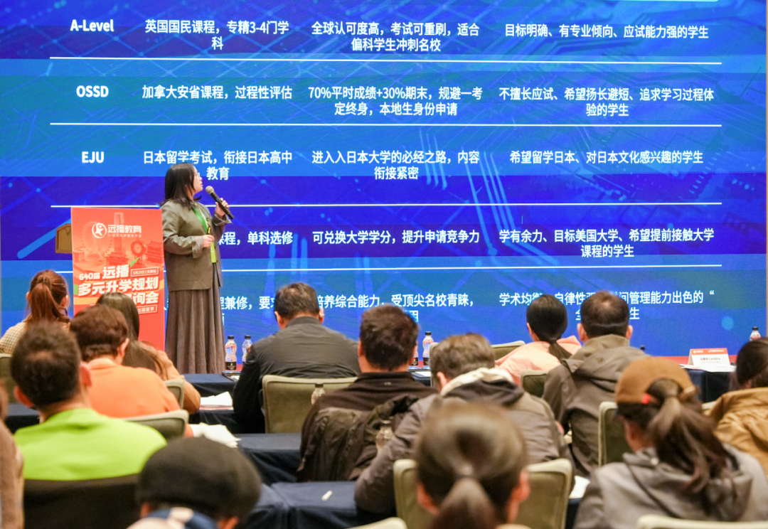 展会现场,我校资深招生老师带来了《突围:如何用国际教育为孩子规划“第二赛道”》主题演讲。当下全球化与科技发展背景下,未来世界更需要具备全球视野、跨文化沟通、创新思维和终身学习能力的人才,而非仅持有文凭的应试者。提前为孩子布局海外升学路线,规划国际教育“第二赛道”,能有效避开升学,让未来发展更从容。
