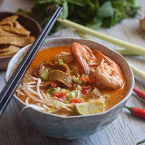 一种浓郁的马来风味汤面,以椰浆为汤底,搭配虾、鱼饼、豆芽和米粉,味道