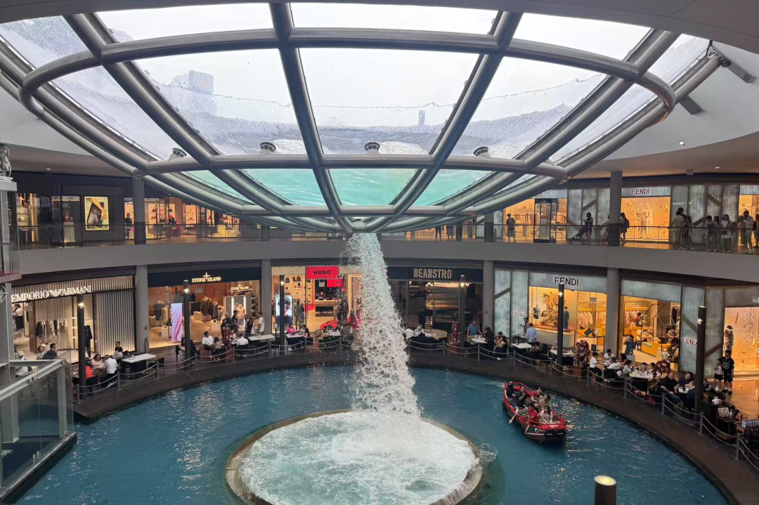 位于滨海湾金沙购物中心的一个独特环保艺术装置。它不仅是建筑的雨水收集系统,还象征着财运不断流入,见者好运。
