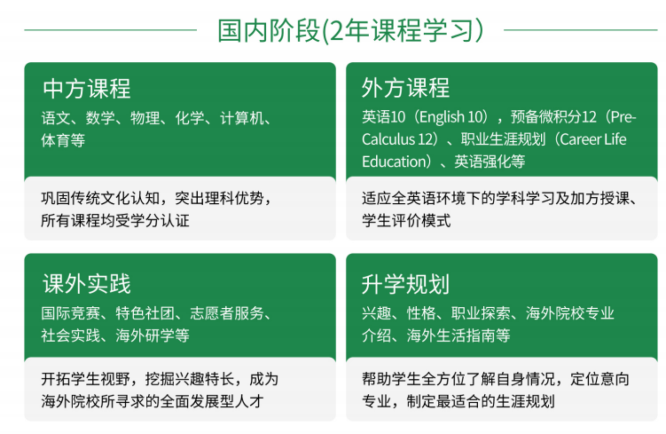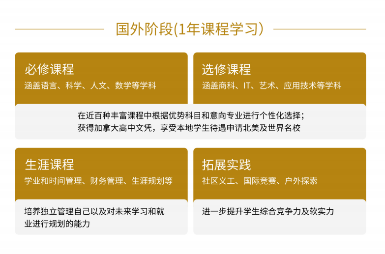 国外课程按照北美高中制定的费用标准收取,无任何隐藏收费。